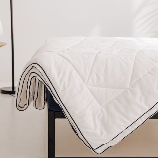 Een 100% vegan deken dat bestaat uit een combinatie van Tencel & biologisch katoen met een Cloud fiber © vulling van 30 gerecyclede petflessen.